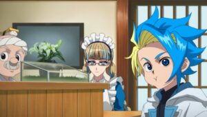Takumi is holding Bey battles against multiple amateurs for some reason.