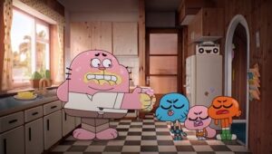 تدور قصة عالم غامبول حول عائلة واترسون المكونة من غامبول القط المشاكس الذي يُعرف عنه غباؤه لكنه دائمًا ما يسعى لإظهار عكس ذلك لمن حوله، أما داروين فهو أخ لـ غامبول بالتبني ظهر في صورة سمكة ذهبية اللون إذ يعشق المفاجآت ويقع في الكثير من المشكلات وبالفعل يتشارك هو وغامبول في الكثير من المغامرات والأحداث المُضحكة على عكس أناييس وهي الأخت الصغرى لـ غامبول التي تميزت بلطفها وذكائها الخارق. أما عن والديهم وهم نيكول وريتشارد فظهرا دائمًا في معظم الحلقات إذ كانت شخصية الأم نيكول مغمورة بالعاطفة والحب والشدة في نفس الوقت، أما ريتشارد فظهر في شكل أرنب ضخم الحجم باللون الزهري وكثيرًا ما كانت شخصية مُضحكة وساخرة كونه غير مؤهل للقيام بأي شئ بل كان يُكلف غامبول وداروين بالمهام بدلاً منه أما هو فكان كسولاً يحب النوم والأكل بشراهة، وهكذا كانت تدور الحلقات بين المغامرة والكوميديا.